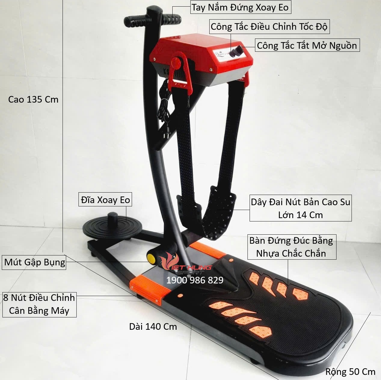 Khung sườn làm bằng thép dày sơn tĩnh điện. Bàn đứng đúc bằng nhựa cứng chắc chắn ko lo bị rách, Nệm đứng ép bằng cao su non mềm có nút nhỏ chống trơn trượt tại cảm giác vững chắc cho người tập.