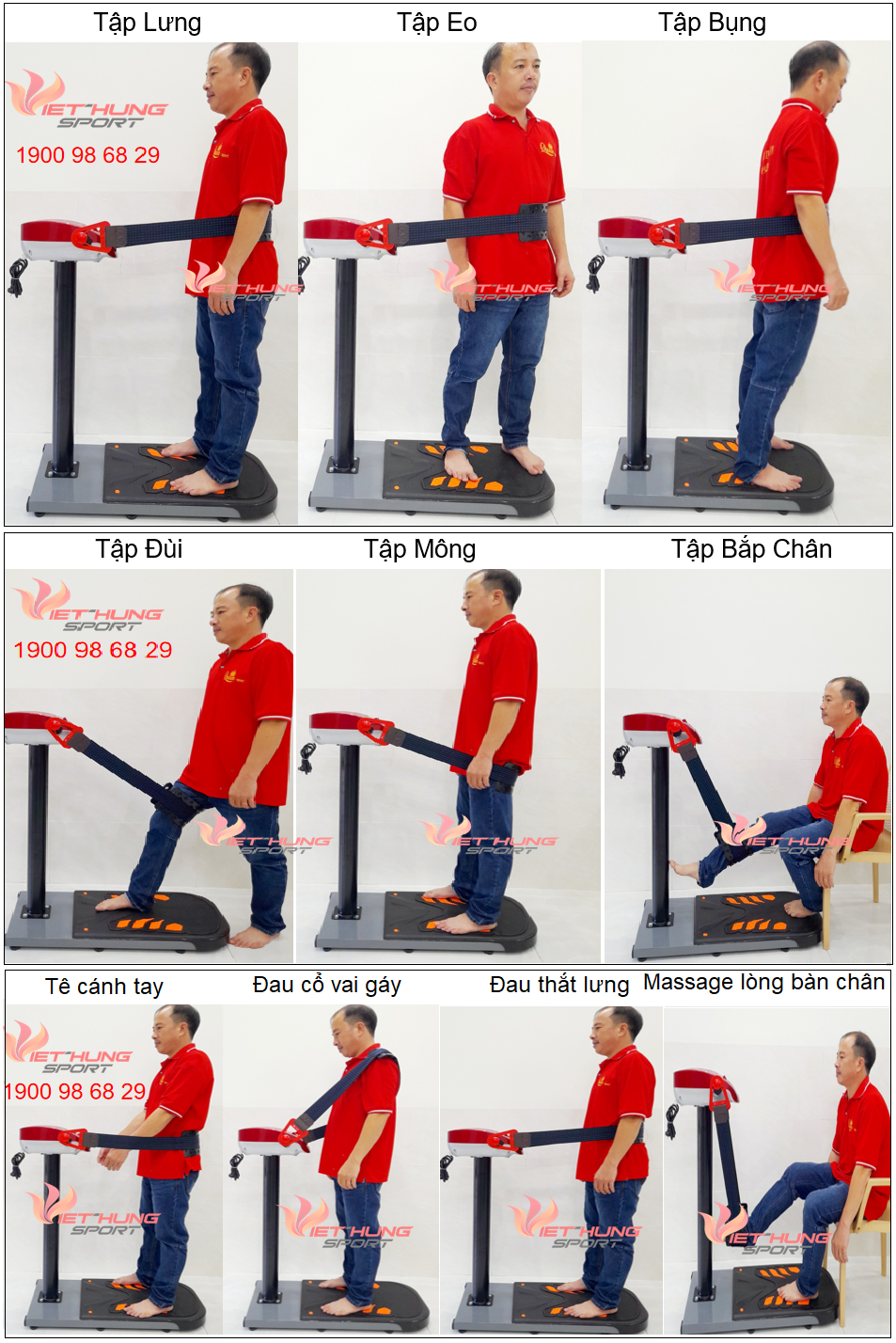 Máy rung đứng Super KSV M150 sử dụng dây đai bản nút tập các bài tập đau lưng đau cổ vai gáy. Tập trị liệu lưu thông máu tê bì tay chân.