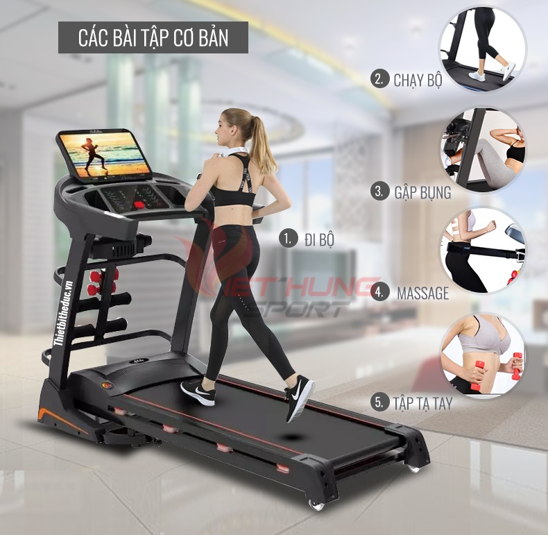Đi bộ chạy bộ với nhiều tốc độ tự chỉnh. Kết hợp 12 chế độ tự động được cài đặt sẵn trên máy giúp người sử dụng dễ dàng lựa chọn bài tập phù hợp và tốt nhất.Kết hợp đầu rung massage phía trước máy. giúp thực hiện bài tập giảm cân, giảm mỡ các vùng bụng, đùi cho vòng eo thon gọn săn chắc.